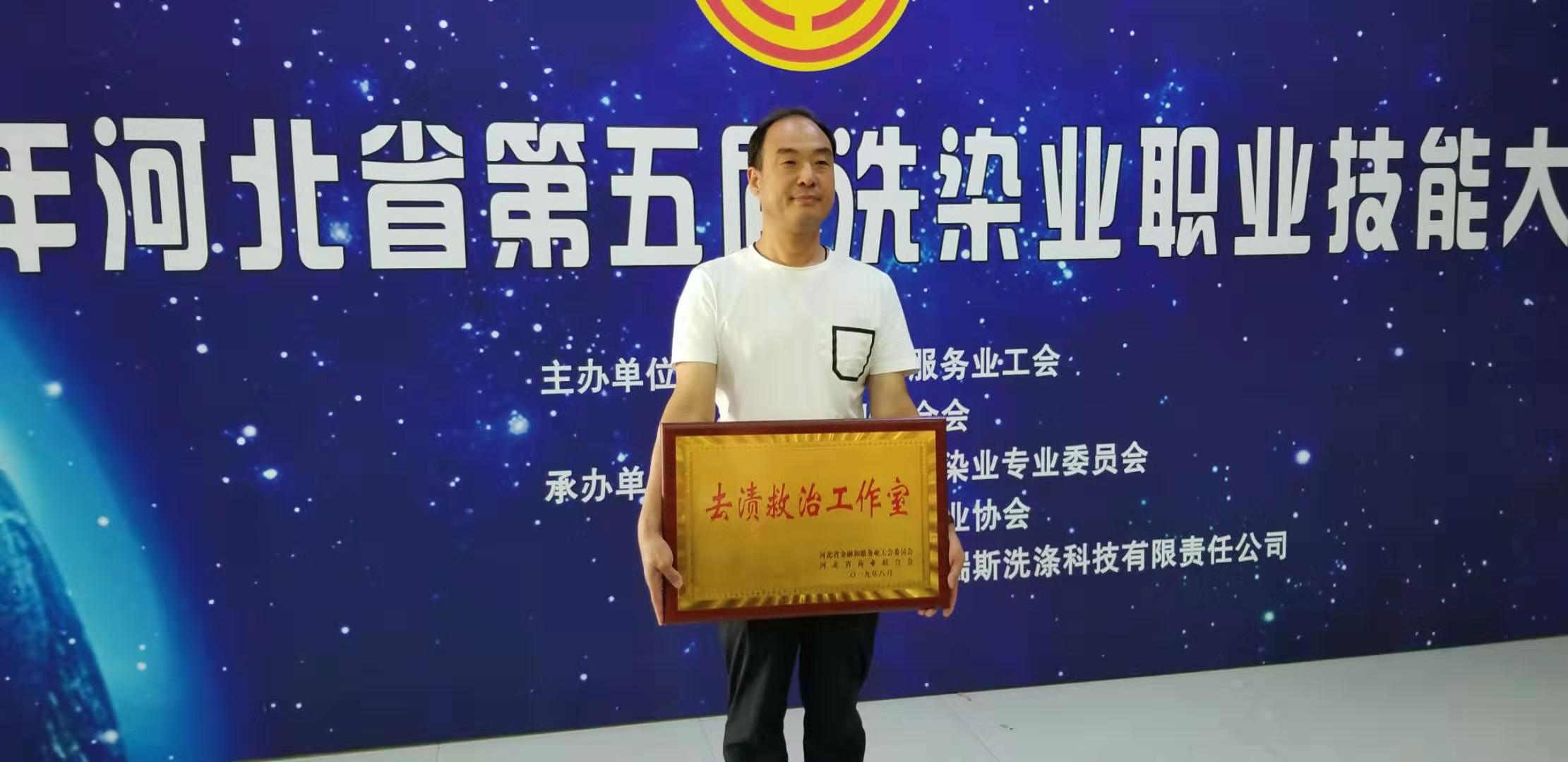 2019年8月31日"2019河北省第五屆洗染業(yè)職業(yè)技能大賽"圓滿(mǎn)落幕,本次大賽賽出水平、賽出風(fēng)格,并選拔出了一大批高技能領(lǐng)軍人才,為了發(fā)揚(yáng)和保持大賽精神,從而使我省洗染技術(shù)更進(jìn)一步得到提高,通過(guò)本次大賽確定了五項(xiàng)技能“工作室”,其中“去漬救治工作室”在我石家莊新航星洗滌設(shè)備公司掛牌成立!